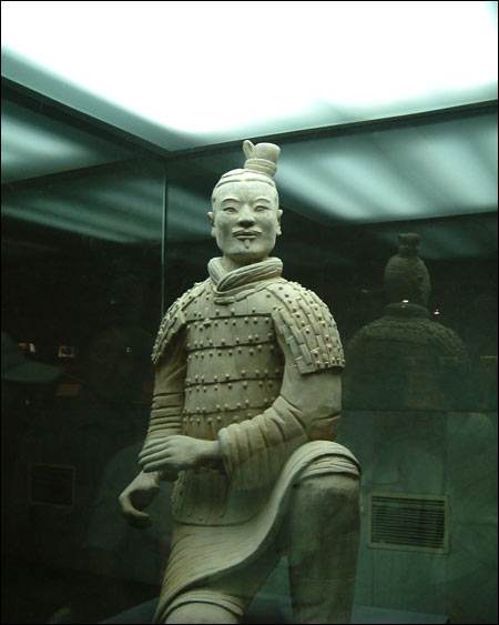 出土的兵馬俑根據(jù)裝束、神態(tài)、發(fā)式的不同,可分為將軍俑,武士俑,車士俑等。每一個陶俑的臉型、發(fā)型、體態(tài)、神情都各不相同。陶俑、陶馬原本都有彩繪,但由于后來的火燒和浸泡,大多已剝落變色。